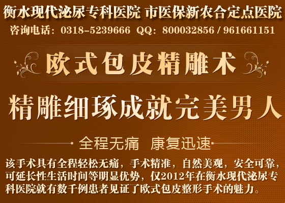 针对包茎,衡水现代泌尿专科医院男科从概念上和观念上打破了传统包皮手术的弊端,在先进采用国际先进的欧式纳米无痕包皮美容术,精确切除过长包皮、包茎,具有安全、无痛苦、不拆线等绝对优势,手术无需住院,随治随走,无任何副作用,术后生殖器外形整齐美观,不留疤痕,不影响正常生活和学习。